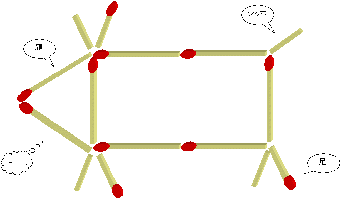 (問題) マッチで作った牛です。 マッチ2本動かして向きを変えて下さい。